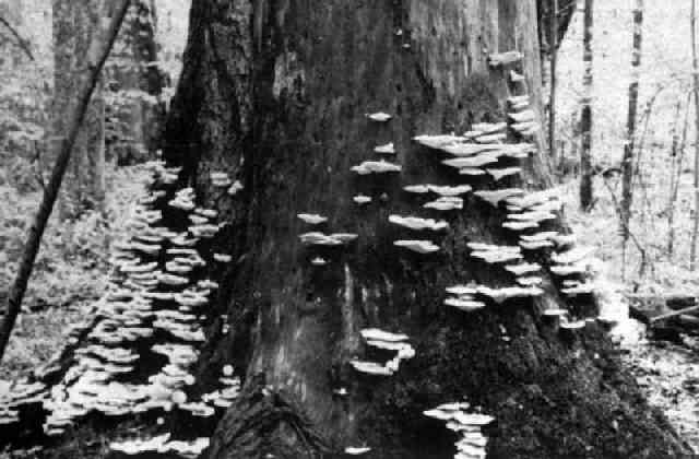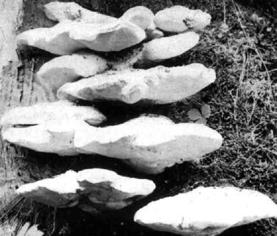 Северный трутовик - Abortiporus borealis (Fr.) Sing. Ель Северный трутовик вызывает смешанную комлевую гниль стволов ели. Гниль располагается в корнях и в нижней части ствола, поднимаясь вверх обычно не выше 2 м. Тип гниения - деструктивный. В конечной стадии гниения древесина приобретает желто-бурый цвет, в ней появляются многочисленные трещины по трем направлениям, заполненные белой грибницей, она становится трухлявой, распадается на кубики и призмы. Заражение деревьев происходит через различные поранения корней и нижней части ствола. Плодовые тела гриба у комля пораженных стволов обычно формируются во вторую половину лета. Гриб может развиваться и на мертвой древесине. В Западной Сибири северный трутовик встречается в старых ельниках Томской области. К описанию гриба |