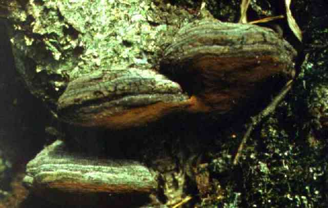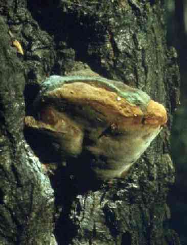 Ложный трутовик - Phellinus igniarius (L. ex Fr.) Quel. Береза В березовых древостоях Западной Сибири центральная стволовая гниль, вызываемая ложным трутовиком, распространена значительно. Гнилью поражаются деревья с 30-40-летнего возраста, когда на стволах появляются мертвые сучья. С возрастом вероятность заболевания дерева сердцевинной гнилью растет, возрастает и степень зараженности насаждения. Часто встречается так называемая скрытая гниль, когда на стволе не образуется плодовых тел гриба. Это затрудняет диагностику заболевания, поскольку гниль обнаруживается только при валке дерева. Деревья березы с плодовыми телами ложного трутовика на стволах сравнительно часто встречаются в коренных (разнотравных и крупнотравных березняках) и производных (на месте разнотравных сосняков) березовых насаждениях. Особенно часто такие деревья попадаются в старых (70-80 лет) березняках. Зараженность березы этим грибом на юге Западной Сибири составляет в среднем около 3 %. К описанию гриба |