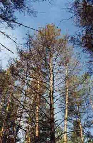 | На фото: Сосновый бор на юге Красноярского края, дефолиированный гусеницами шелкопряда-монашенки.