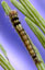 Морфология. Гусеницы старших возрастов очень крупные, достигают 11 см в длину, обычно черные или черно-серебристые с широкой серебристой полосой вдоль спины и желтоватой полоской по бокам. Позади головы расположены две перевязи из синих жгучих волосков, хорошо видных у потревоженной гусеницы. Количество возрастов и размеры головной капсулы варьируют в зависимости от продолжительности фазы гусеницы, которая может занимать один, два или три календарных года. Обычно гусеницы самцов имеют 5-8 возрастов, гусеницы самок – от 6 до 9 возрастов.